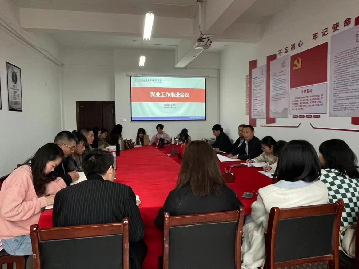 会上,党总支副书记桂光泽通报了学院毕业生情况,目前买球官网共有毕业生99名,其中本科生63人,专升本学生36人,省内生源84人,省外15人;强调做实做细就业“一生一策”,厘清学生需求,加大精准帮扶力度,从就业育人的角度扎实推进就业工作。