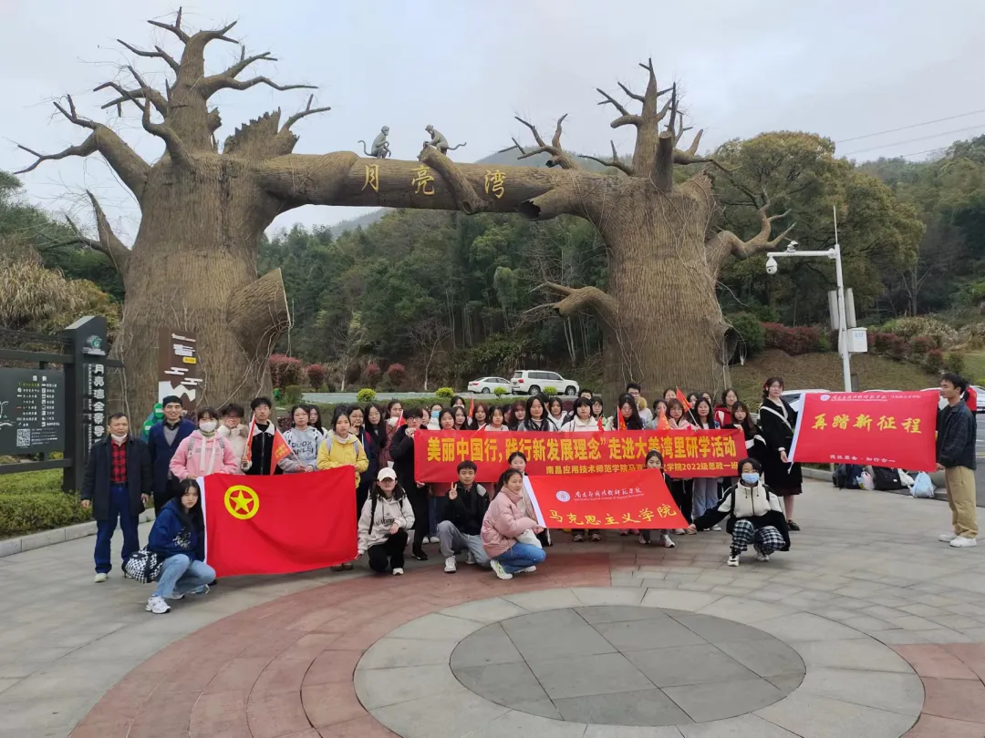 红船荡漾,星火燎原,红色研学正当时。为贯彻“弘扬伟大建党精神,自信自强,守正创新”的二十大理念,学习和践行“踔厉奋发,勇毅前行”的二十大精神,3月25日,十大买球的正规网站红色班级——“砥砺前行班”思政一班46人在班主任卢林保老师的带领下前往大美湾里举办了以“美丽中国行,践行‘新发展理念’”为主题的红色研学活动,为提升此次研学活动的专业性,特别邀请江西中医药大学周世新教授和省内知名企业家夏雷先生参与指导。在此次活动中,同学们深入了解“德技兼备,知行合一”的校训,践行“不忘初心、牢记使命”的革命理念,发扬革命精神,传承红色基因,在未来的日子里艰苦奋自强不息。