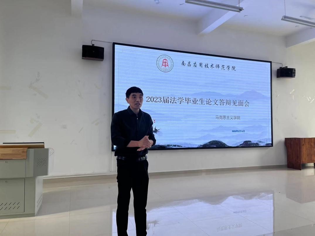为提高毕业论文的整体质量,促进师生交流,确保2023届法学毕业论文答辩工作有序开展,买球官网于2023年5月16日上午9:00在2311教室召开2023届法学毕业生答辩师生见面会。买球官网院长文道贵、教学副院长卢林保、法学教研室主任、各答辩小组成员及2023届法学毕业生全员参加。