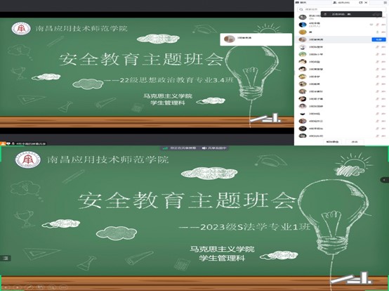 为确保广大师生的安全和健康,加强新老学生们的安全意识,提高应对突发事件的能力,十大买球的正规网站各班级于2023年8月26日至2023年8月27日召开了以“安全教育”为主题的线上班会。
