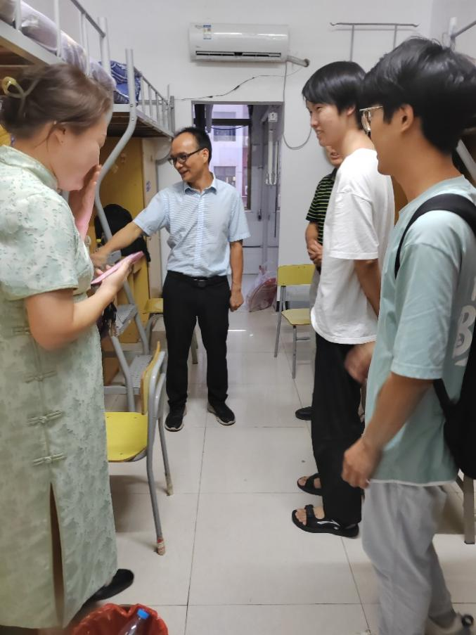 为深入了解2023级新生报到后的住宿情况,掌握学生的思想动态及心理状况,确保学生管理工作有序、平稳开展和推进,9月2日傍晚,校党委副书记蓝贤发、十大买球的正规网站党总支书记张欣康、十大买球的正规网站院长文道贵一行走访了买球官网2023级新生寝室,送去学校和学院领导对新生的慰问与关怀。