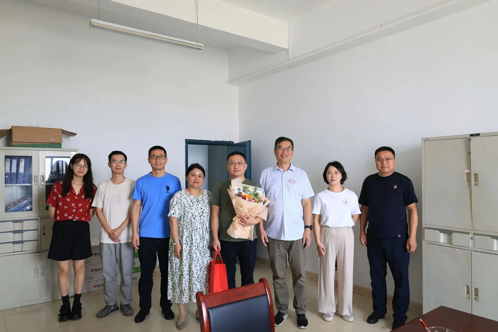 教师节前夕,校领导走访慰问在学校教育教学工作中,取得突出业绩的优秀教工及困难教职工,并送上一捧鲜花及节日大礼包,以感谢他们铭记教书育人使命,甘为人梯,主动当好“铺路石”和领路人,为学校办好人民满意的教育所做出的突出贡献。