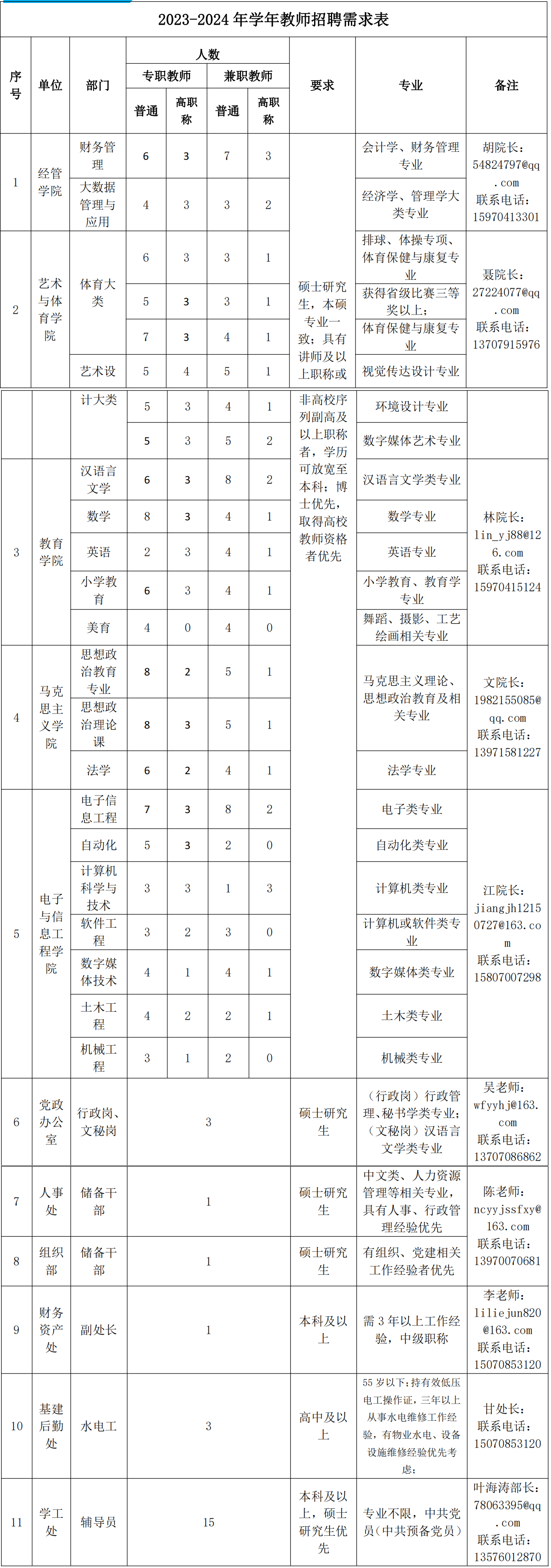 1.博士研究生:具有博士学位,具备较强的教学科研能力,有较好的科研业绩,人数不限,一人一议,具体面谈。