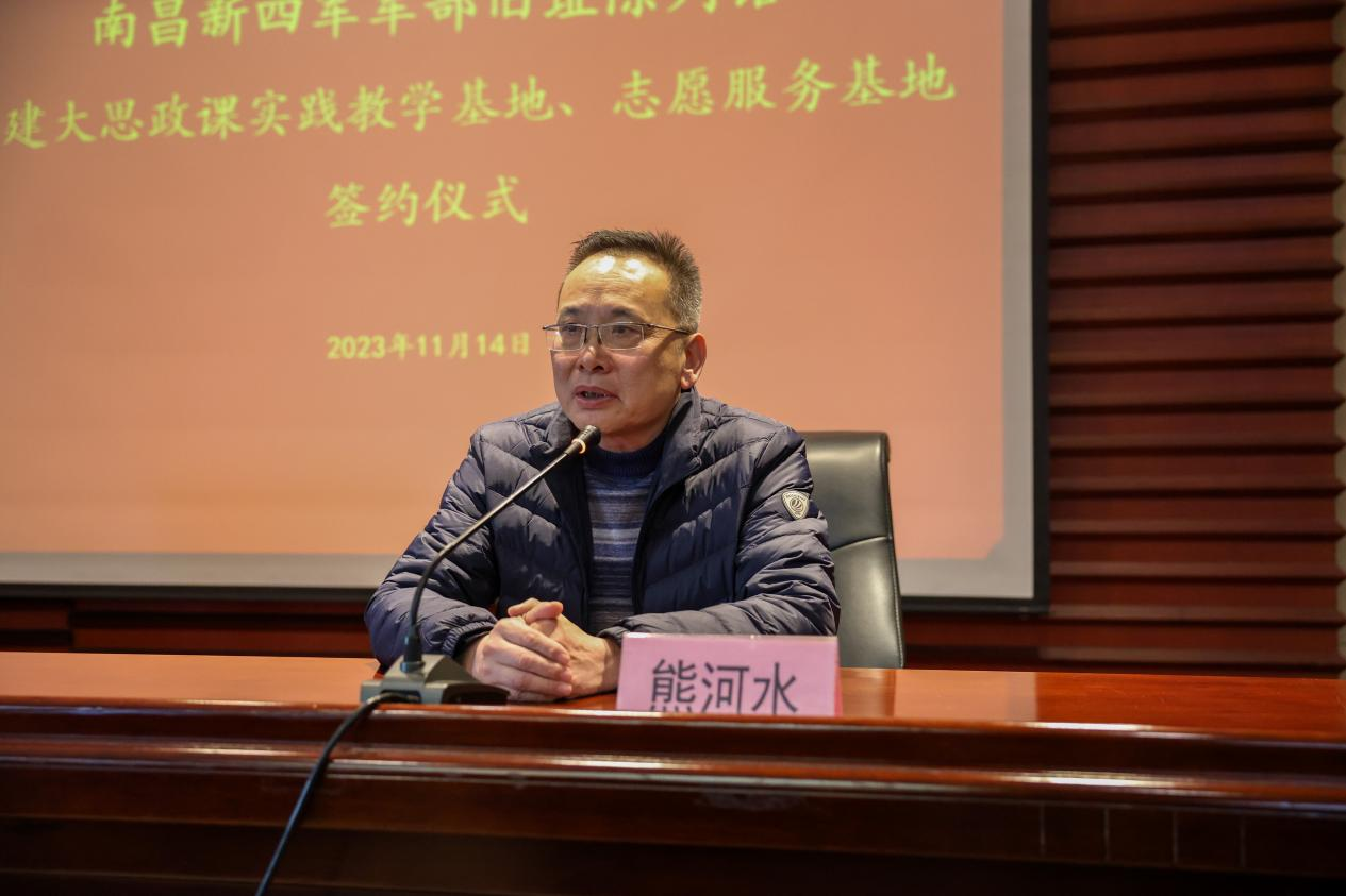 11月14日,南昌应用技术师范学院与南昌新四军军部旧址陈列馆合作共建“大思政课”实践教学基地、大学生志愿服务基地签约暨揭牌仪式在南昌新四军军部旧址陈列馆举行。校党委副书记蓝贤发、南昌新四军军部旧址陈列馆副馆长熊河水出席揭牌仪式,学校团委负责人,马克思主义学院负责人,思政课教师,学生代表80余人参加揭牌仪式。