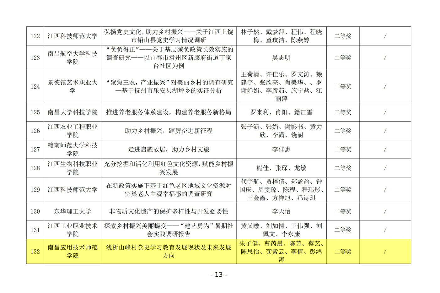 近日,江西省教育厅公布了《“强国有我、青春有为”暑期社会实践活动暨2023年“万名大学生进千站”文明实践志愿服务行动评选结果的公示》。