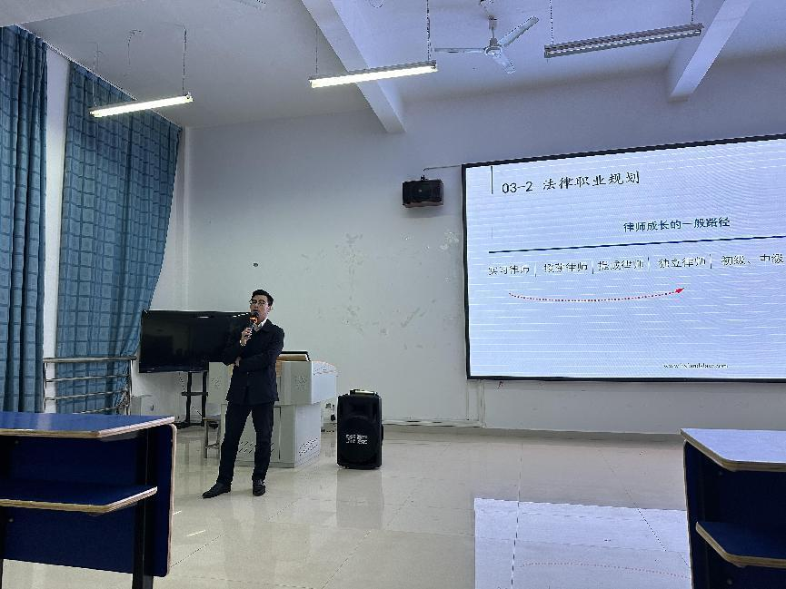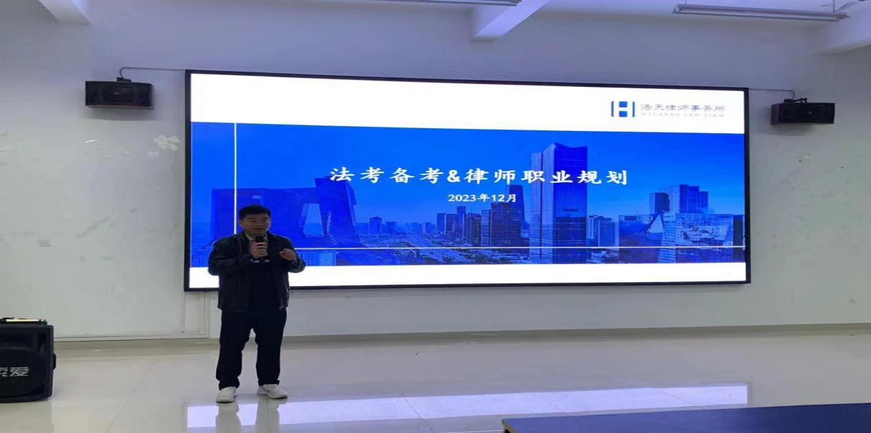 2023年12月14日18:00,十大买球的正规网站于教学楼2311教室举行了法考知识及律师职业规划讲座。此次讲座由党总支书记张欣康主持,浩天律师事务所谢泽楷律师主讲,买球官网法学专业200余名学生参加本次讲座。