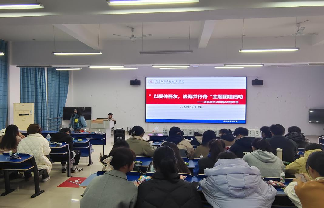 2023年12月10日,为了解师生诉求,征集发展建议,夯实群众基础,为即将召开的学校第一次党员大会营造平安和谐的环境,十大买球的正规网站22法学一班开展了“以爱伴吾友,法海共行舟”为主题的班级团建活动,辅导员吴昱杉出席活动。通过开展此次团建活动,增强了班级集体意识,营造积极向上、团结友爱的班级文化氛围,激发了同学们对学习、生活的热情,绽放了青春活力。
