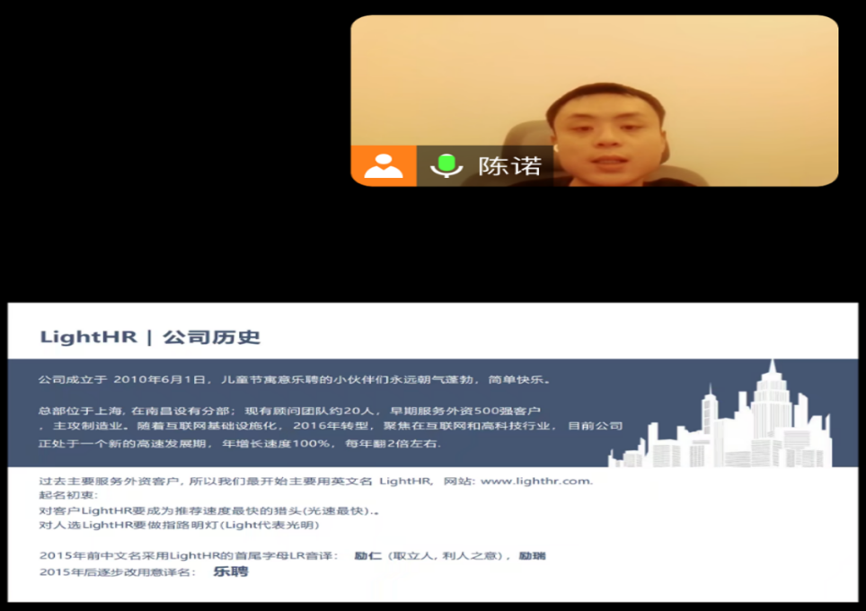 为拓宽学生的就业渠道,满足学生的就业需求,为学生提供全新就业机遇,十大买球的正规网站于2024年1月9日下午召开了线上就业招聘会。本次会议邀请到了上海乐聘网络科技有限公司陈诺主讲,学院党总支书记张欣康、毕业生辅导员、全体毕业生参加了会议,会议由学院负责就业工作的朱文清老师主持。