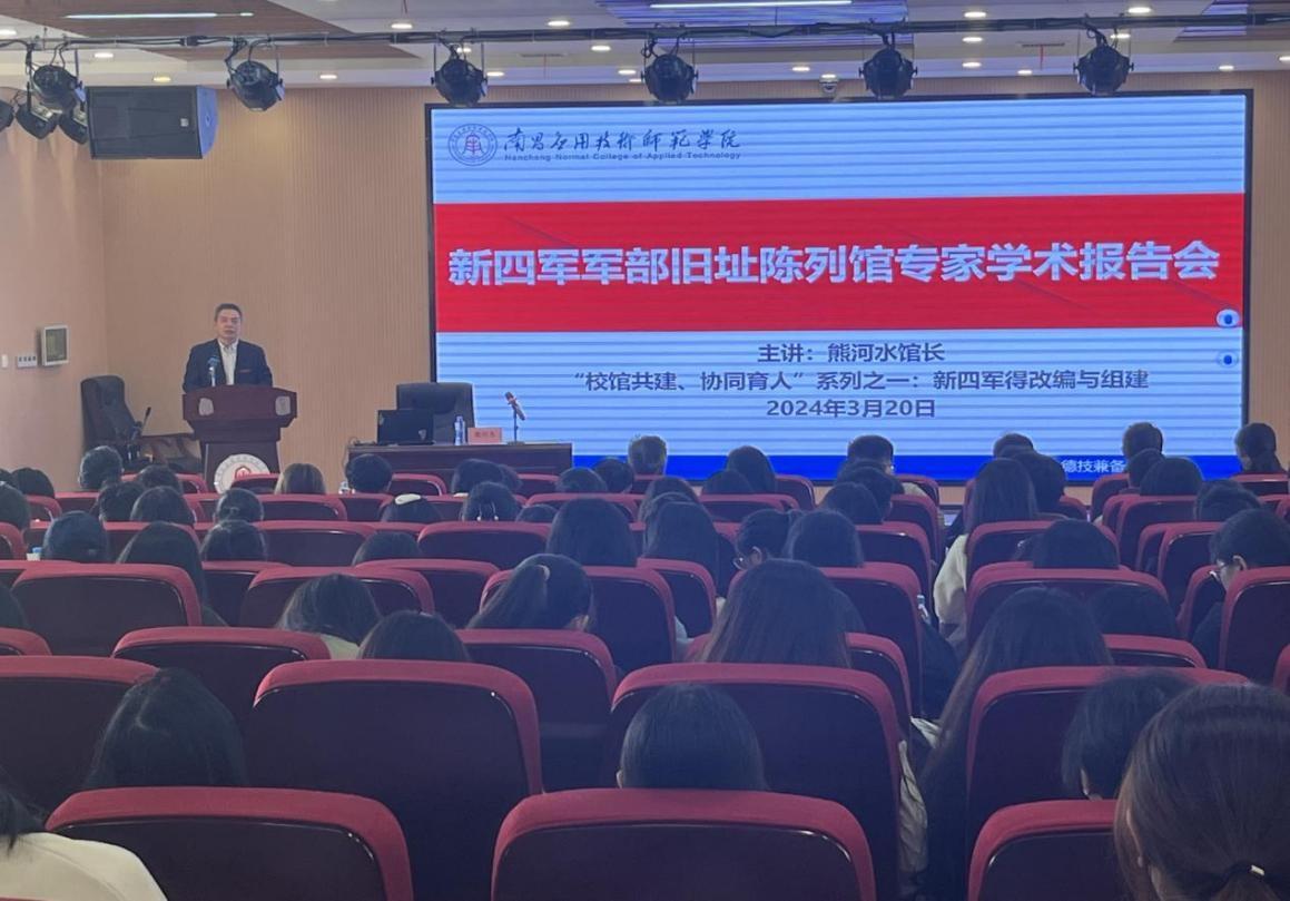 2024年3月20日下午,由我校与南昌新四军军部旧址陈列馆联合打造的“校馆共建、协同育人”特色大思政课系列讲座《新四军的改编与组建》在教学楼2312学术报告厅顺利开讲。第一讲由我校“讲座教授”、南昌新四军军部旧址陈列馆副馆长熊河水研究馆员主讲,陈列馆文博馆员刘怡嘉、管雅丽、熊昕助讲。校党委副书记蓝贤发,党委宣传部、十大买球的正规网站、学工处、校团委负责人与部分思政课教师、学生代表共约270人参与了本次讲座活动。