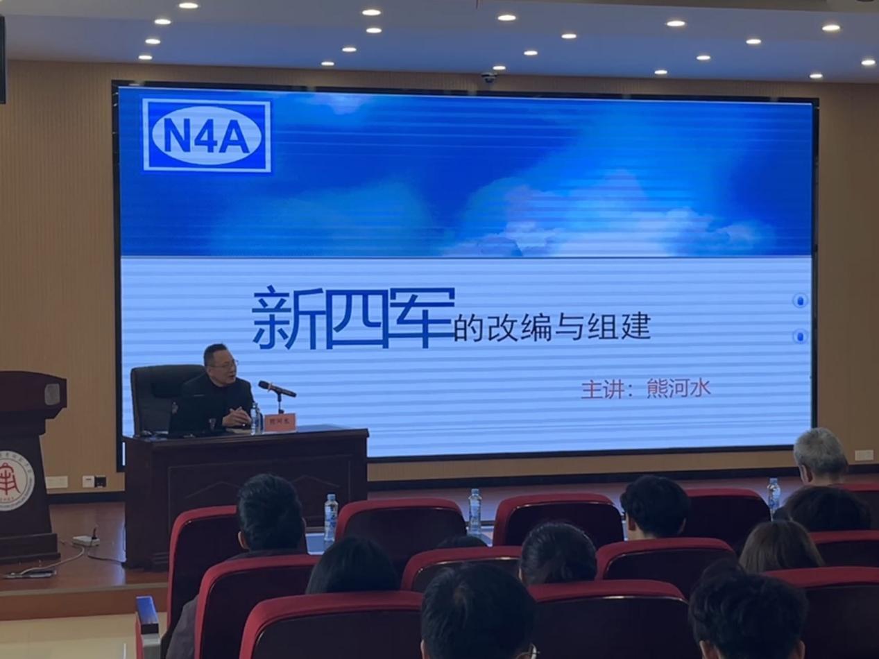 新四军是抗日战争时期中国共产党领导的一支人民军队,为坚持华中抗战、夺取抗日战争的最后胜利作出了重大贡献。南昌新四军军部在新四军发展历史中具有重要地位。熊河水研究馆员围绕《新四军的改编与组建》主题,向大家介绍了新四军军部的组建和改编的历史背景,讲解了新四军军部驻南昌时期,新四军为抗日民族统一战线的建立和巩固、推动抗日救亡运动的开展以及为恢复和发展东南地区党组织做出的巨大贡献,生动诠释了“铁军精神”的思想内涵。讲座观点清晰、语言风趣、史料丰富,富予思想启迪。尤其是陈列馆三位金牌讲解员的助讲,形式新颖。在讲课过程中,她们以“赤焰依然闪烁”、“玉兰花开小楼前”、“一支钢笔的故事”等革命故事,深情并茂地向师生们展现了革命先辈为抗日救国抛头颅、洒热血的英勇无畏精神及其伟大爱国情怀,赢得听课师生的阵阵掌声。