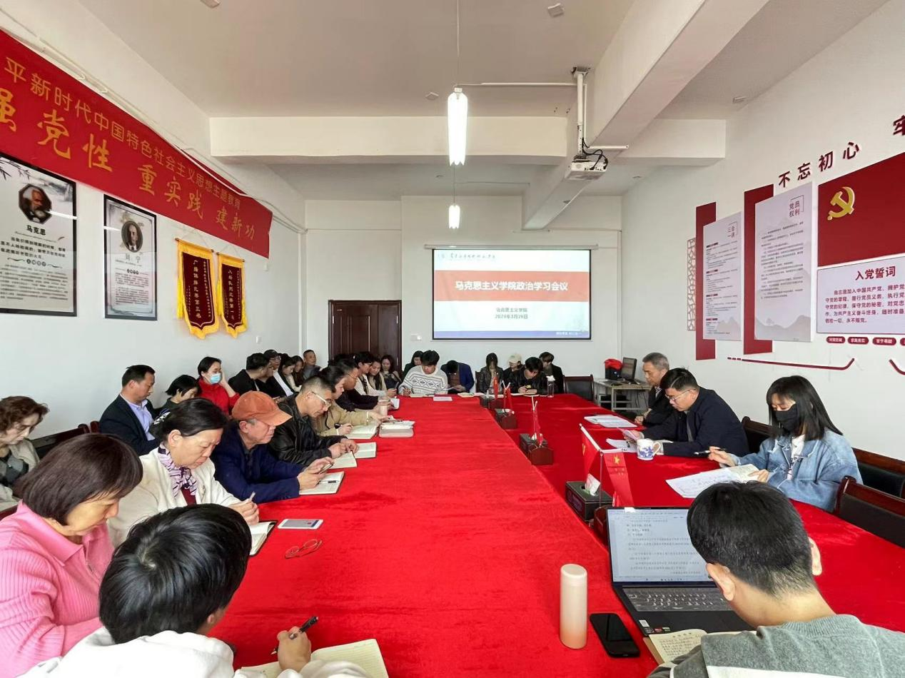 3月26日下午,学院在1511会议室召开政治学习会议。院长文道贵,党总支书记张欣康,党总支副书记李婷及全体教职工参加此次会议,会议由张欣康主持。
