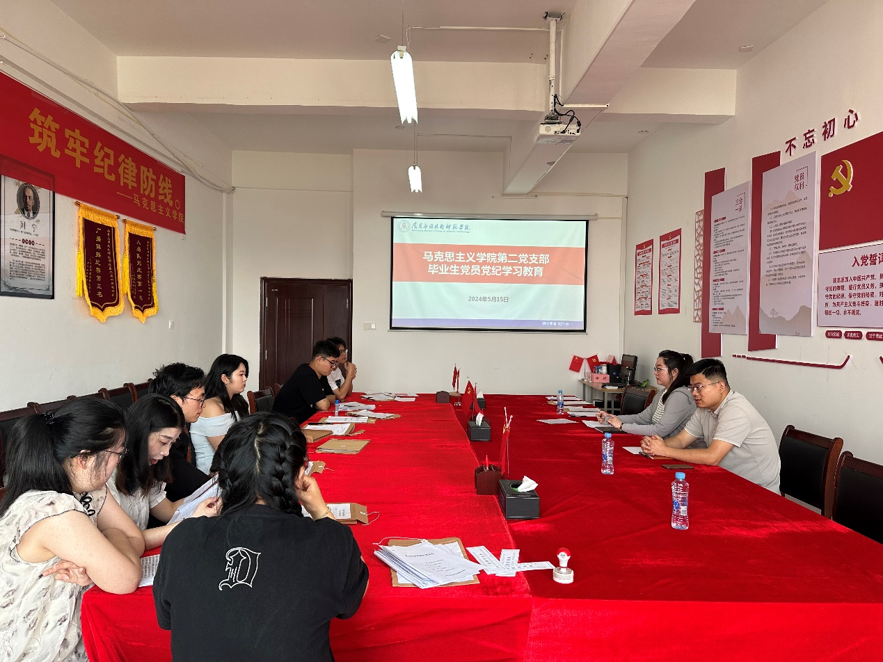 2024年5月15日,十大买球的正规网站第二党支部在1511会议室针对即将毕业离校的党员开展党纪学习教育专题党课,党总支书记张欣康出席并讲话。支部书记吴昱杉授课。