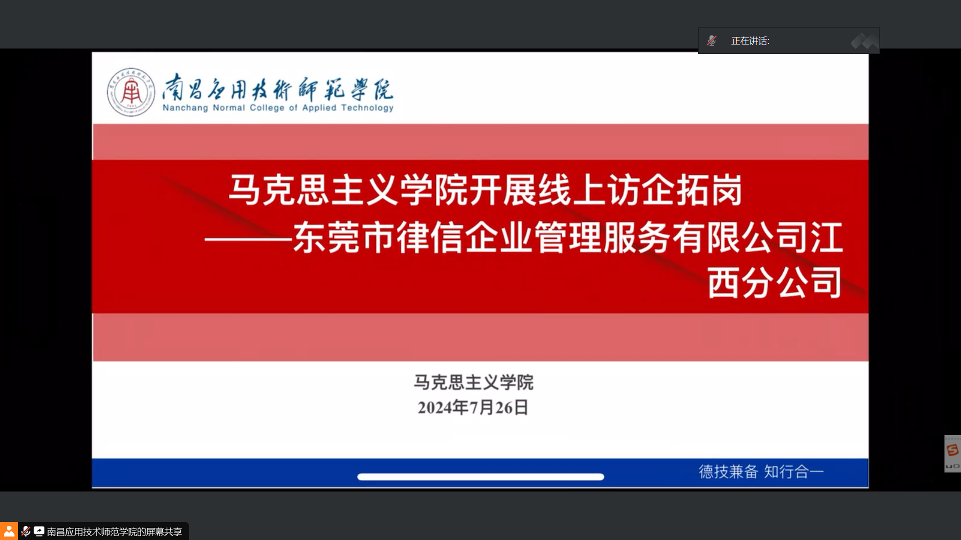 会上,学院党总支书记张欣康首先致辞,对东莞市律信企业管理服务有限公司江西分公司的热情参与表示衷心感谢,并简要介绍了学院近年来的发展情况和取得的成就。他强调,学院始终高度重视与企业的合作,希望通过此次线上访企拓岗活动,能够进一步加深双方的了解,拓宽合作领域,为毕业生搭建更加广阔的就业平台。