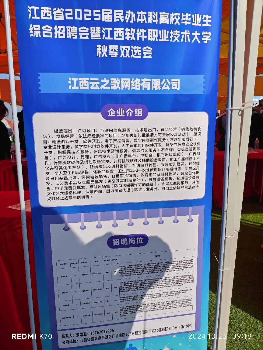 为进一步加强校企合作,拓宽毕业生就业渠道,提升人才培养质量,实现更全面更高质量就业。10月23日上午,十大买球的正规网站就业专员朱文清,前往江西软件职业技术大学招聘会现场进行访企拓岗工作。