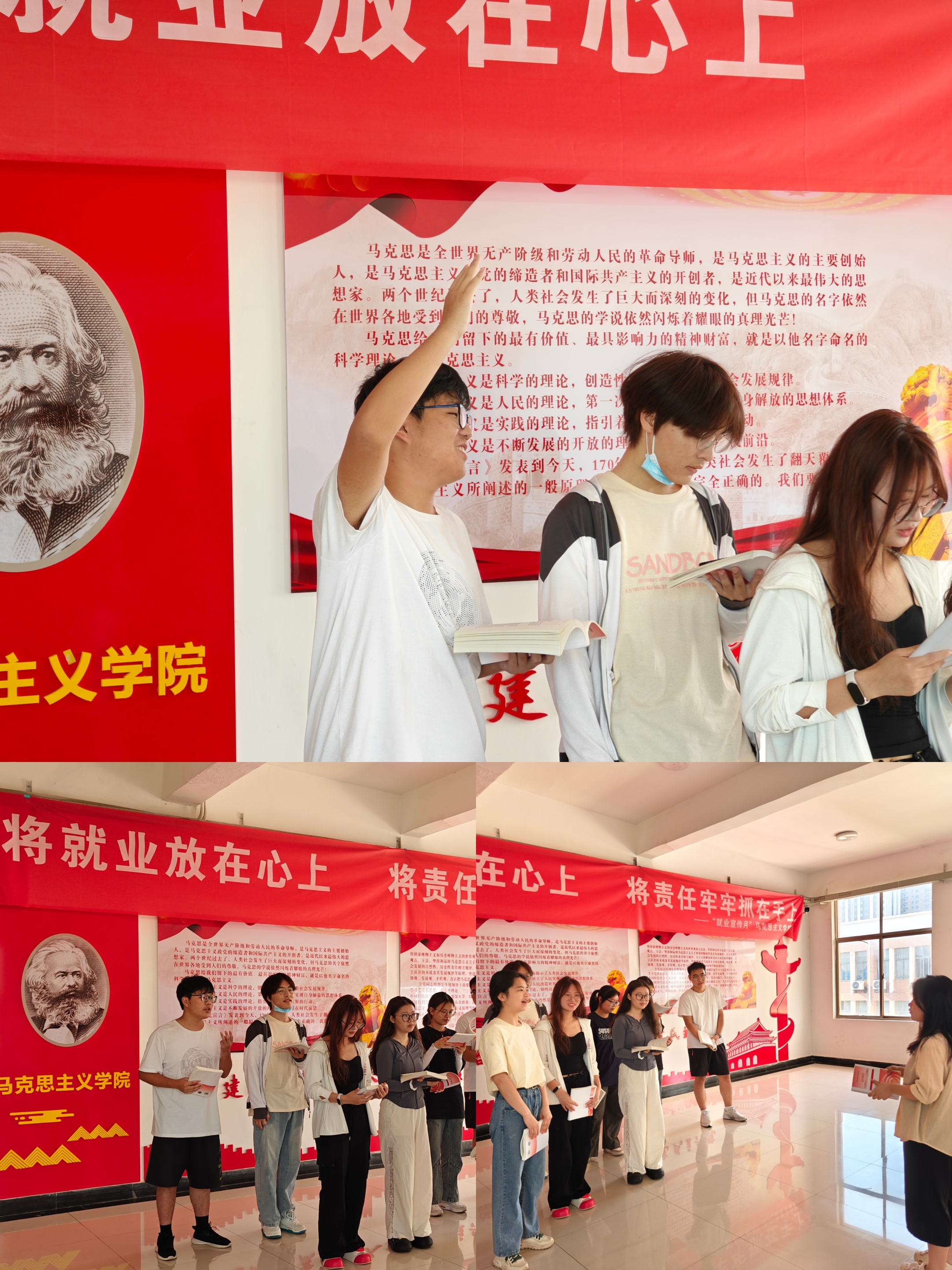 为深入学习贯彻习近平新时代中国特色社会主义思想,引导激励青年学子爱读书、读好书、善读书,切实增强历史自觉和文化自信,自觉践行当代青年的责任与担当。十大买球的正规网站星火宣讲团于2024年5月29日组织开展了“走进习近平新时代中国特色社会主义思想”主题晨读活动。