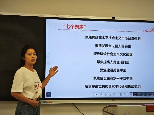 此次宣讲从“二十届三中全会内容了解”“七个聚焦之文化强国”“七个聚焦之提高人民生活品质”“以奋发有为的姿态谱写新时代篇章”四个部分展开讲解。戴已晨同学从多元角度切入,紧密结合实际,以鲜明的主题、生动的案例,阐述了全会精神对青年学生未来发展的重要指导作用。她通过对井冈山爱国主义实践教学活动、南昌新四军军部旧址陈列馆参观互动、新建县第五小学宣讲活动等实践经历的回忆与分享,为同学们展现十大买球的正规网站在文化强国及思政课堂创新实践上的努力与贡献。