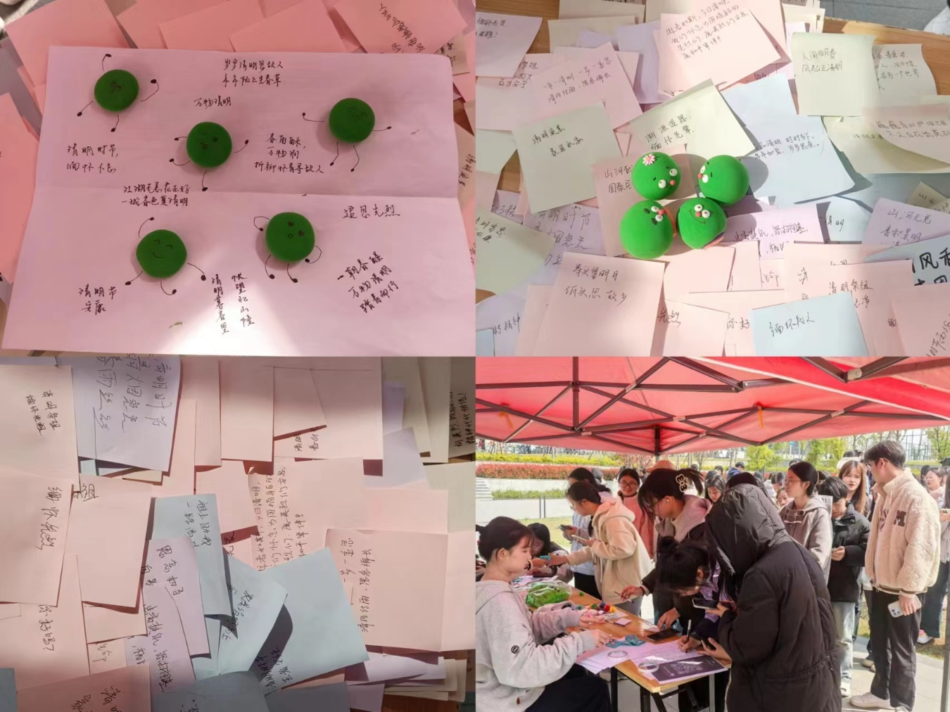 活动现场,同学们在工作人员的指引下充分发挥了自己的想象,将自己对传统节日的理解以及对先烈的缅怀之情融入到一个个粘土捏成的青团之中,感悟中华传统文化魅力。同时又以笔墨为媒介为革命先烈写下寄语,一句句饱含同学们对先烈的感恩与追思之情的真挚话语,被张贴了起来,形成了一道独特的校园文化风景线。同学们在此次活动中不仅增进了彼此间的交流与情感联结,还让中华优秀传统文化和爱国教育在大学校园里焕发出新的活力。