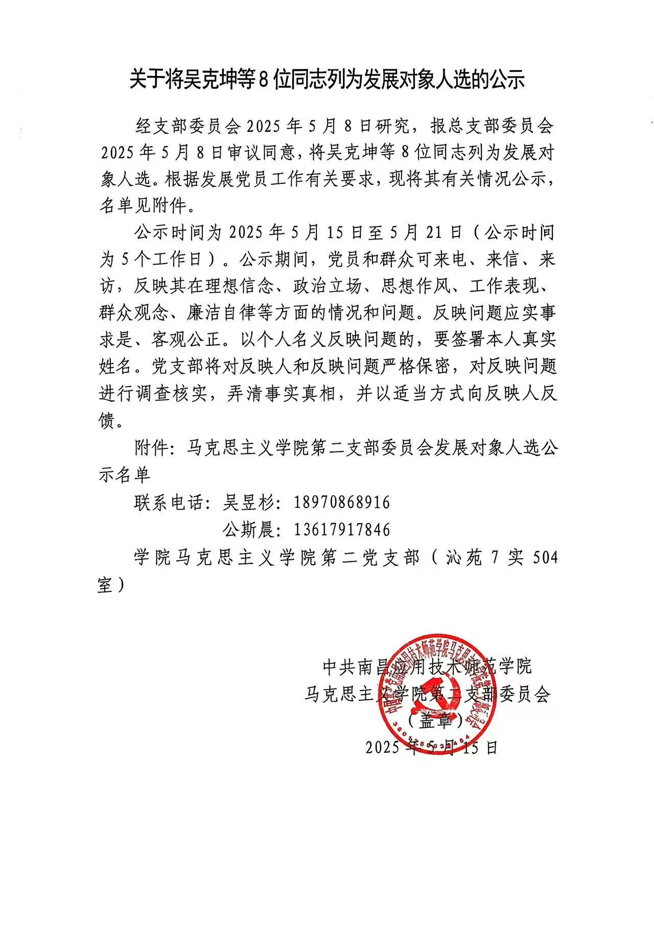 首页栏目 通知公告 学院新闻 习近平思想学习专栏 主题教育学习 院长书记信箱 您现在的位置是:首页 > 首页栏目 > 通知公告 关于将吴克坤等8位同志列为发展对象人选的公示 管理员2025-05-152967 上一篇 中共十大买球的正规网站党总支委员会关于“党员先锋岗”推荐对象的公示 下一篇 关于拟将幸修丽、曹芮晨、徐雨婷、方伟思同志转为正式党员的公示