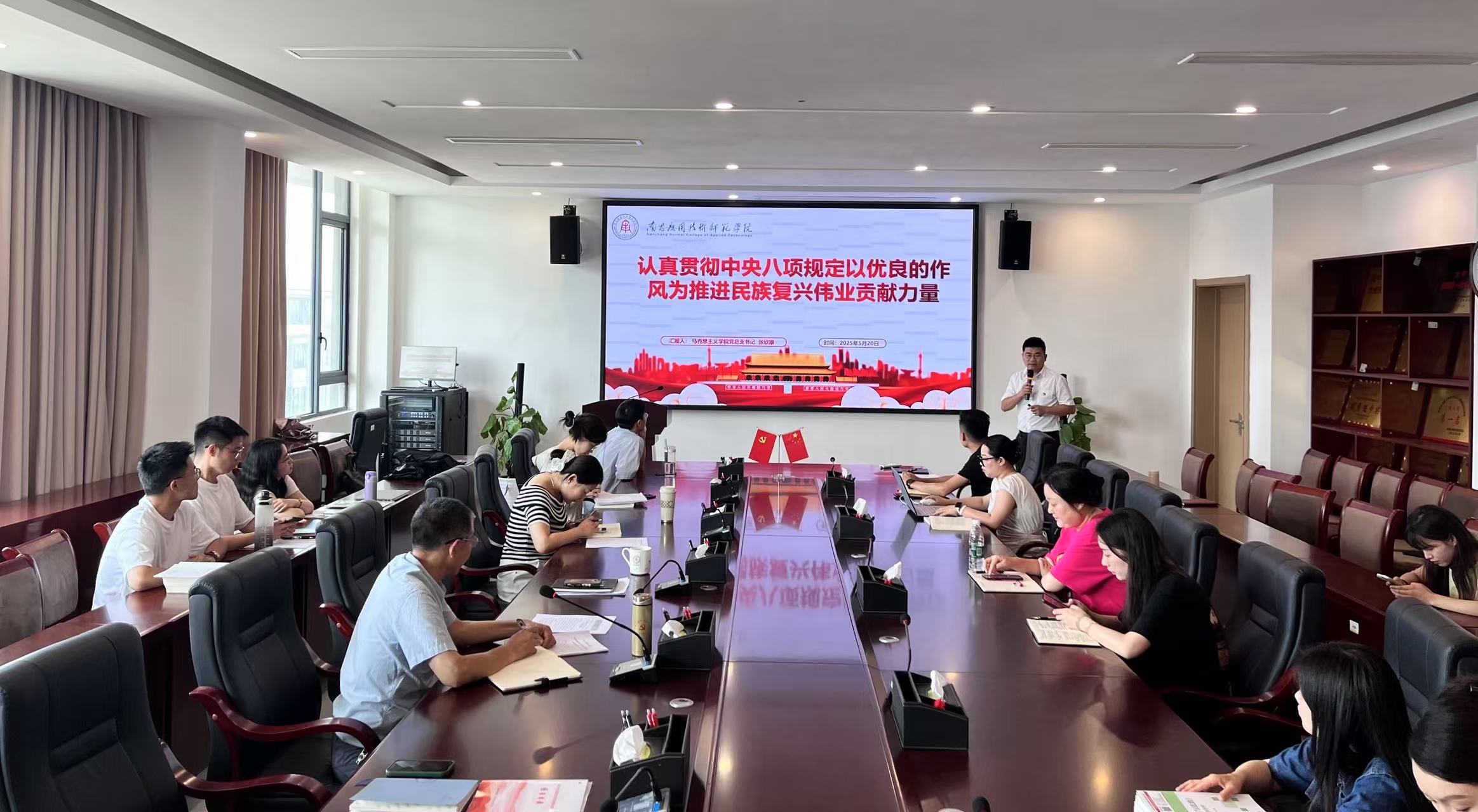 为进一步严明纪律规矩,增强党员党性修养,提升党支部凝聚力和战斗力。5月20日下午,十大买球的正规网站第一党支部在沁苑七实506会议室开展“认真贯彻中央八项规定以优良的作风为推进民族复兴伟业贡献力量”主题党课。本次党课由学院党总支书记张欣康主讲,全体党员参加。