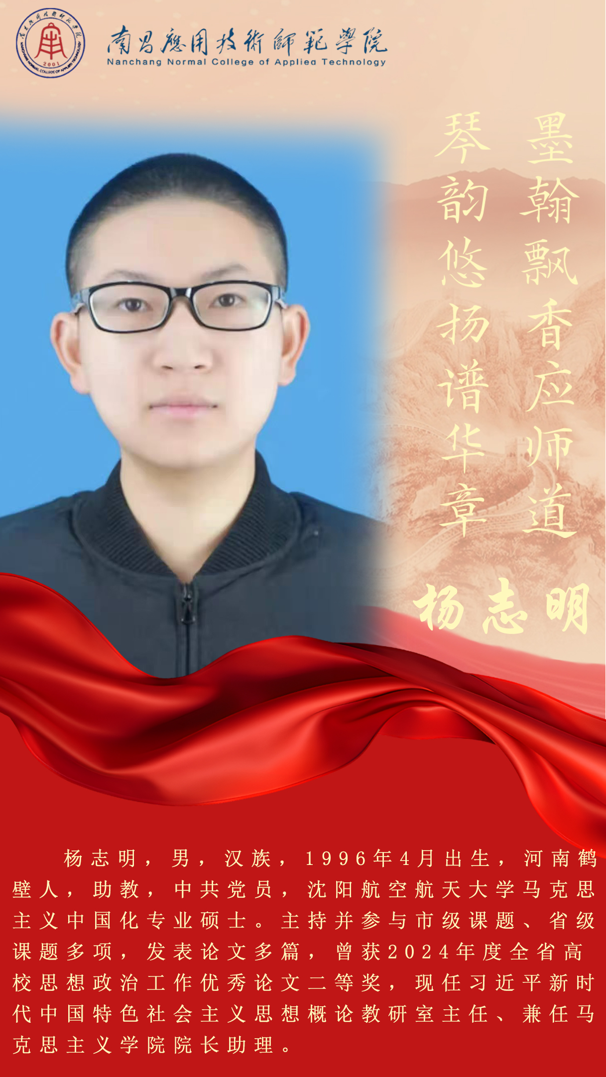先进典型 优秀毕业生 优秀在校生 优秀教职工 您现在的位置是:首页 > 先进典型 > 优秀教职工 杨志明 习近平新时代中国特色社会主义思想概论系主任 管理员2025-06-091878 下一篇 李婷 思想政治教育公共课系主任