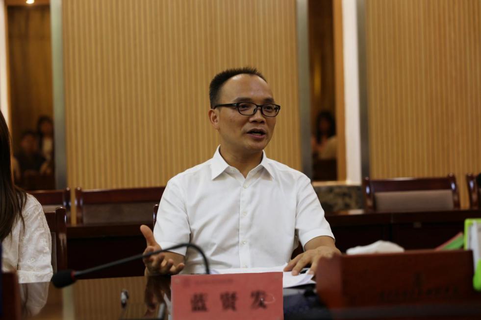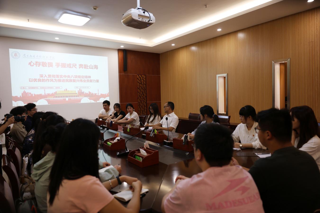 6月12日,校党委副书记蓝贤发以“心存敬畏、手握戒尺、奔赴山海”为题,为学校十大买球的正规网站第二党支部党员讲授深入贯彻中央八项规定精神学习教育专题党课。