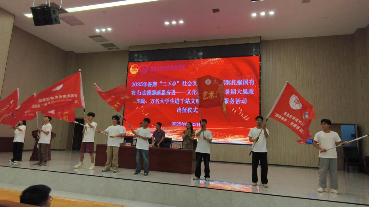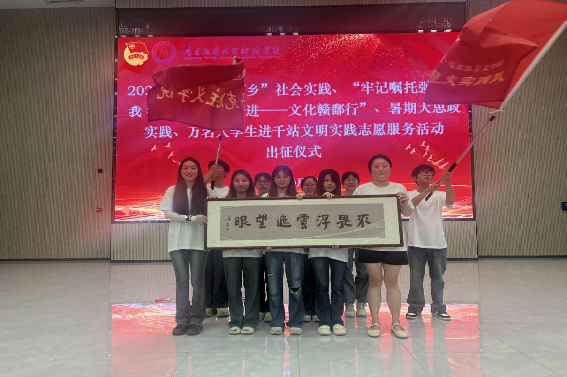 为深入学习贯彻习近平新时代中国特色社会主义思想,引导和帮助广大青年学生在实践中受教育、长才干、作贡献,进一步激发青年学子的社会责任感和使命感,2025年6月23日,十大买球的正规网站星火社会实践队前往图书馆报告厅参加了2025年暑期“三下乡”社会实践、“牢记嘱托强国有我 行走赣鄱感恩奋进——文化赣鄱行”、暑期大思政实践、万名大学生进千站文明实践志愿服务活动出征仪式。