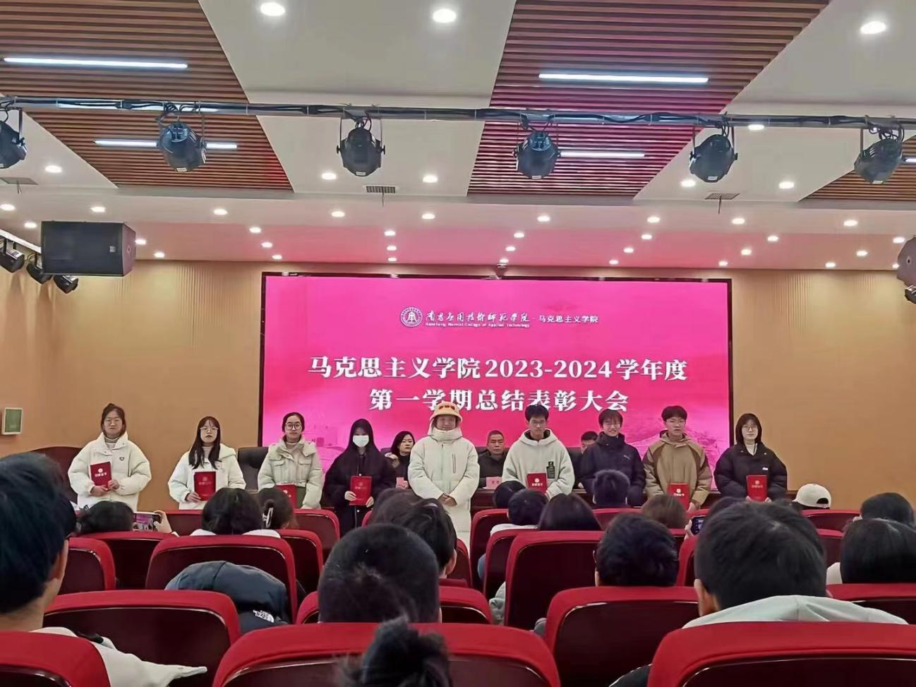 为激励学生诚笃勤勉、知行合一,努力取得更好的成绩,十大买球的正规网站于2023年12月19日在教学楼2312教室召开2023-2024学年度第一学期总结表彰大会,对本学期表现突出的先进集体(团队)和优秀个人予以表彰。十大买球的正规网站院长文道贵、党总支书记张欣康、党总支副书记李婷、学生科科长康柠出席大会,并为获奖集体代表和师生颁奖。本次大会由团委老师胡琛主持,获奖学生代表及十大买球的正规网站团总支第二届学生会全体成员参加大会。