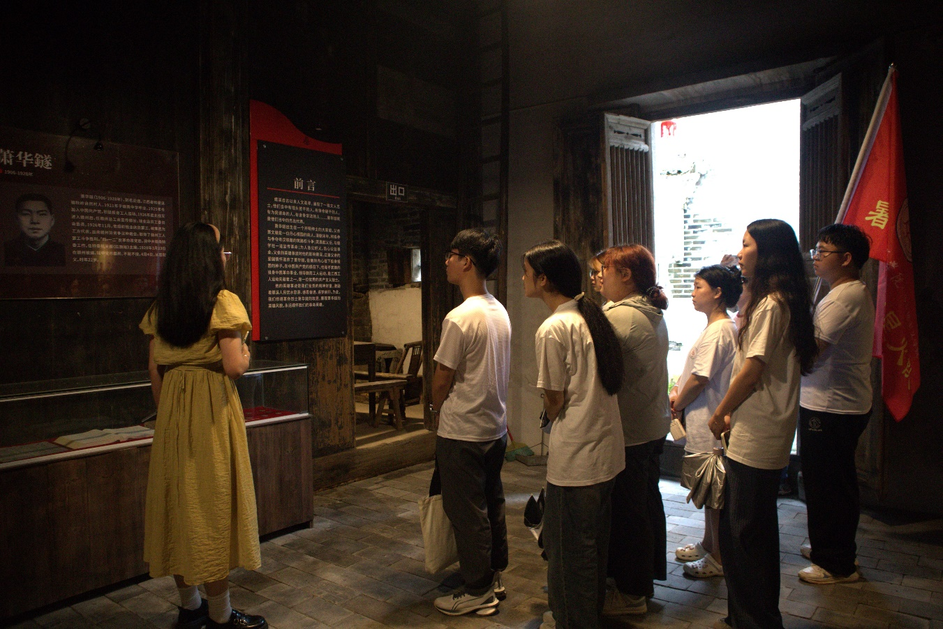 下午,队员们来到了秋岭古村的萧华鐩故居。萧华鐩1925年冬加入中国共产党,积极投入工人运动,1928年3月23日在赣州被敌人逮捕。“红旗飘飘当空现,革命成功属早迟。”在狱中的他受尽酷刑,仍不屈不挠,在墙上写下了这首浴血诗。同年4月4日,萧华鐩从容就义,时年22岁。在参观中,通过那些泛黄的历史照片,队员们仿佛穿越时光,目睹了他身着粗布衣裳,手持笔杆,在昏暗的油灯下聚精会神地写作。那些古朴的文物展品,则像是一部部无言的史书,静静地述说着他昔日的生活点滴。革命烈士萧华鐩一生短暂却精彩,在滚滚历史中谱写了可歌可泣的壮丽诗篇,他的英雄事迹永垂不朽。