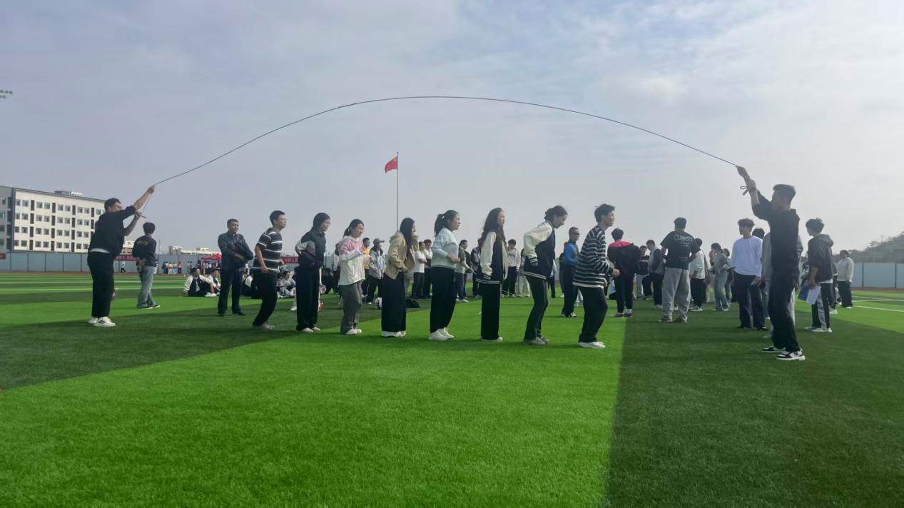 10人集体跳绳的场地里,学院教师轻盈跳跃,绳子在空中划出一道优美的弧线。在这个项目中,大家齐心协力,共同把握跳绳的节奏,每一次成功的跳跃都凝聚着团队的努力,不仅展现了健康的体魄,更体现了积极向上的生活态度。