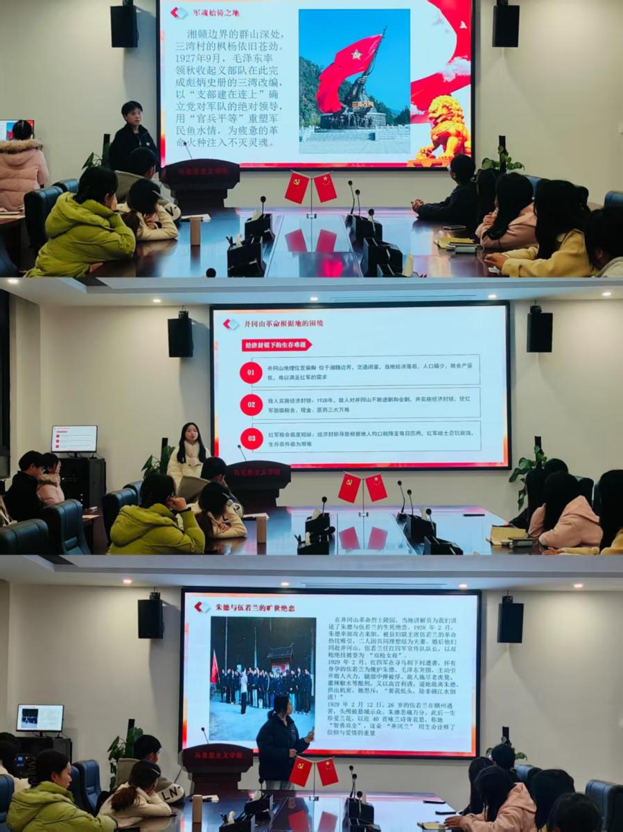 为深入传承红色基因、凝聚青年奋进力量,引导马克思主义学子在知行合一中筑牢信仰根基,2025年12月16日,十大买球的正规网站“星火”读书会在沁苑七实506活动室顺利举办井冈山研学分享会。活动以“红色走读”为载体,通过回溯研学历程、分享实地感悟,推动井冈山精神在青年群体内化于心、外化于行。