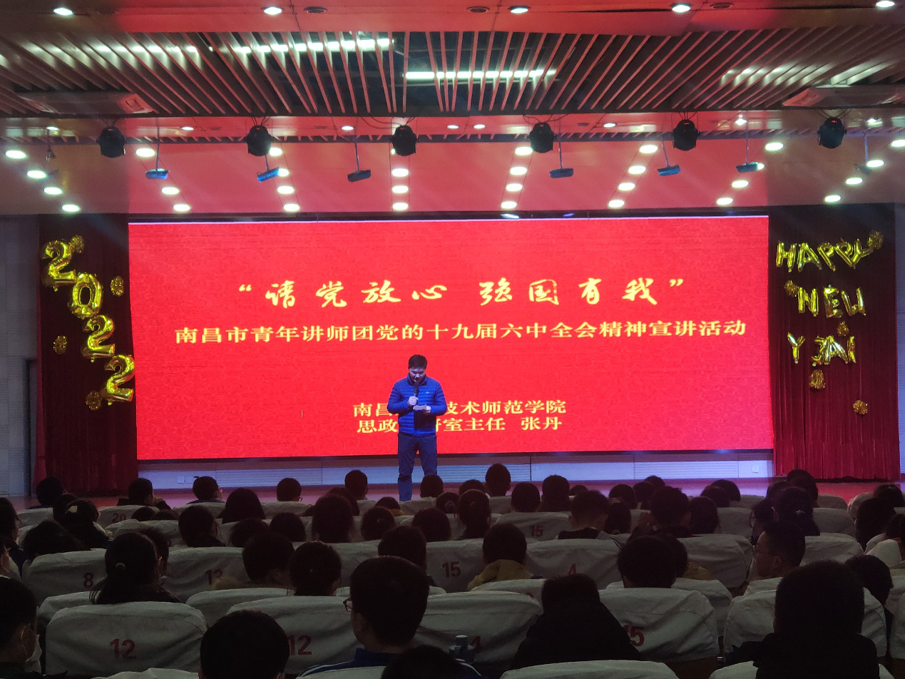 为传达学习贯彻党的十九届六中全会和省第十五次党代会精神,推动党史学习教育深入开展,共青团南昌市委组织成立“南昌市青年讲师团”,并进一步组织“南昌市青年讲师团党的十九届六中全会巡讲团”,在全市广泛启动“请党放心 强国有我”青年讲师团巡讲活动。我校思政教师、思政教研室主任张丹被选为巡讲团成员之一。