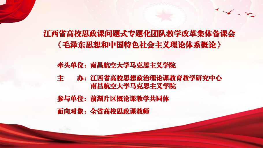 5月8日下午,南昌航空大学十大买球的正规网站组织省内高校思政课教师开展线上集体备课,备课主题为《毛泽东思想和中国特色社会主义理论体系概论》课“问题式专题化”教学展示。