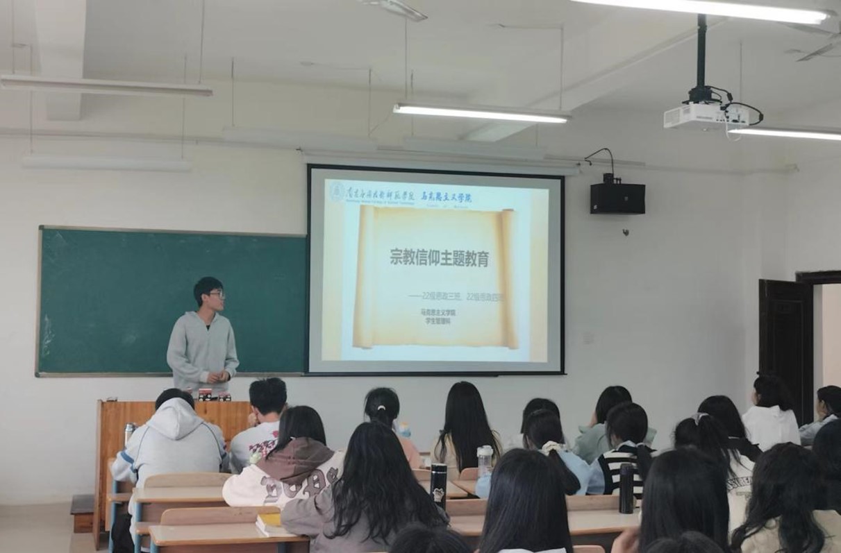 宗教信仰是一种意识形态,它作为一种精神风俗,是极其复杂的,与我们的生活、工作和学习等各方面都有着千丝万缕的联系,但有些“邪教”却危害我们的精神世界和生活。活动上辅导员通过一个个鲜活的事例,使同学们对宗教信仰的本质有了深刻的认识,也了解了宗教与邪教的区别,邪教蛊惑、蒙骗他人,危害社会,学生们受益匪浅。