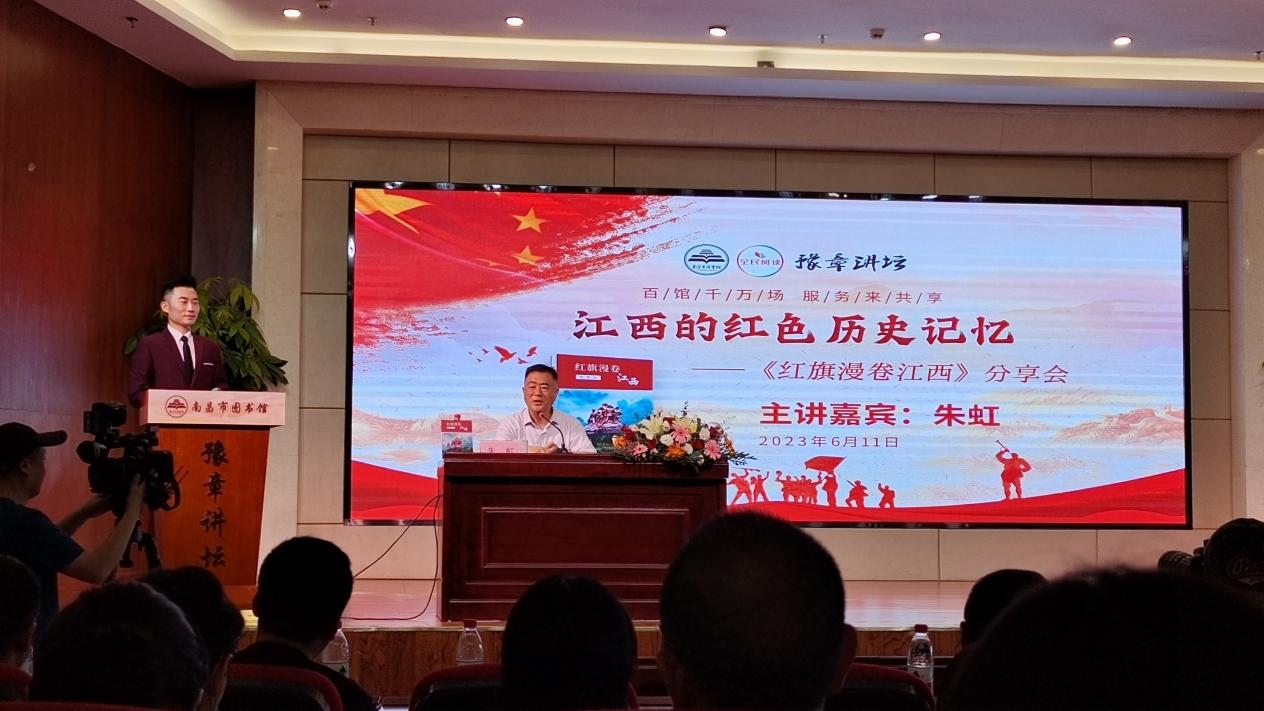 为深入学习贯彻习近平新时代中国特色社会主义思想和党的二十大精神,引导我校青年学生走进红色历史、感悟红色文化,6月11日上午买球官网红色班级“星火班”(即22级思政三班)全体同学前往南昌市图书馆参加由南昌大学教授、博士生导师,江西省人大常委会原副主任、党组副书记朱虹主讲的——江西的红色历史记忆:《红旗漫卷江西》分享会。