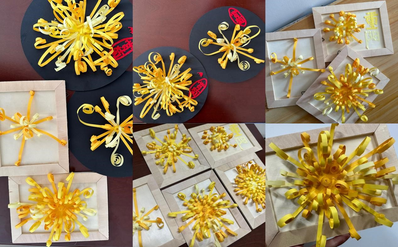 李婷向全体党员介绍了重阳节的由来和衍纸文化的历史,随后全体党员观看衍纸制作教程视频,学习如何运用衍纸制作菊花并展示自己的衍纸作品。