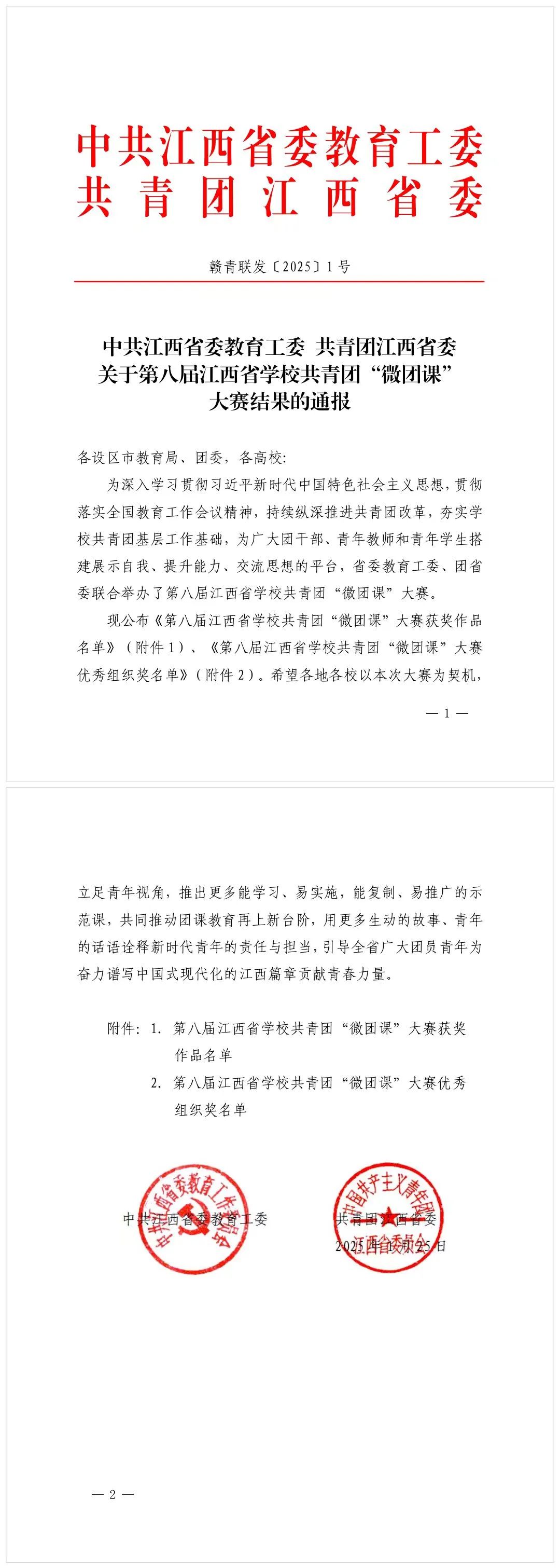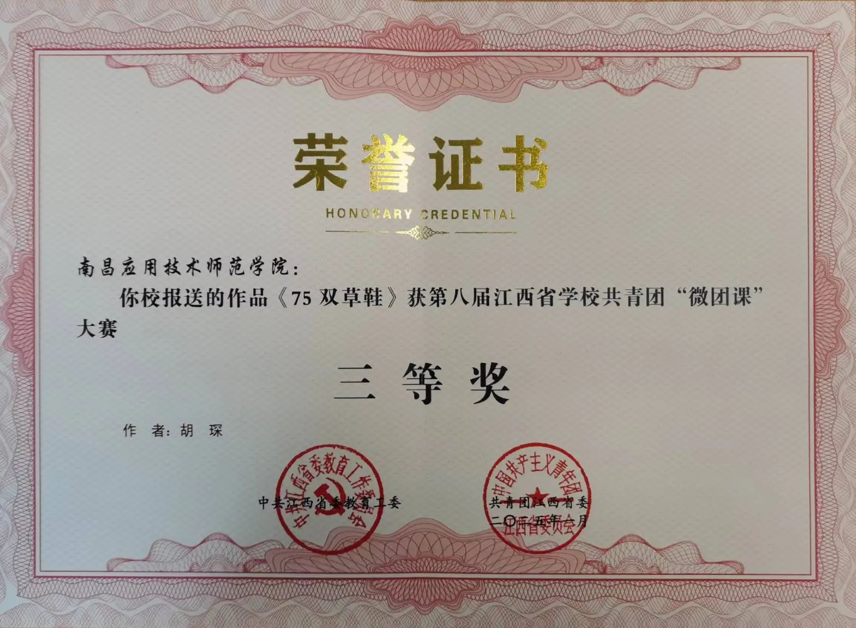 近期,我校师生在省委教育工委、团省委联合举办了第八届江西省学校共青团 “微团课”大赛中取得了优异成绩。其中买球官网胡琛老师获三等奖。