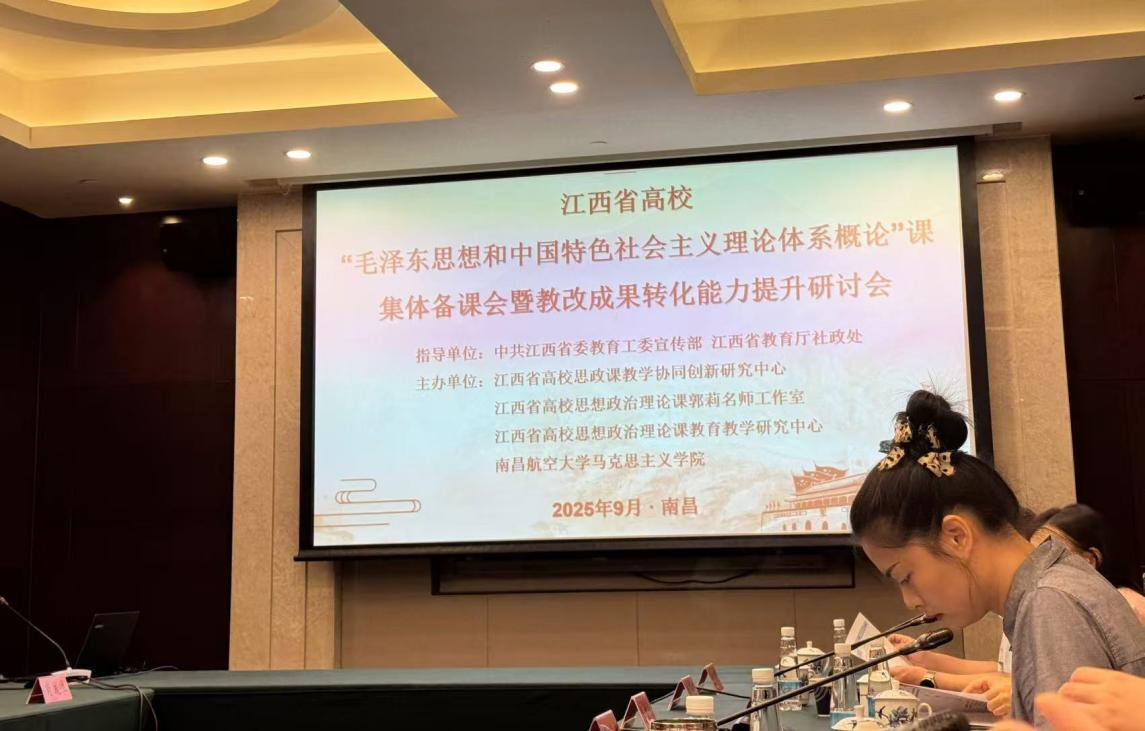 2025年9月7日,江西省高校“毛泽东思想和中国特色社会主义理论体系概论”课集体备课会暨教改成果转化能力提升研讨会在前湖酒店顺利召开,买球官网思政教师龚文婷参加了此次研讨会。
