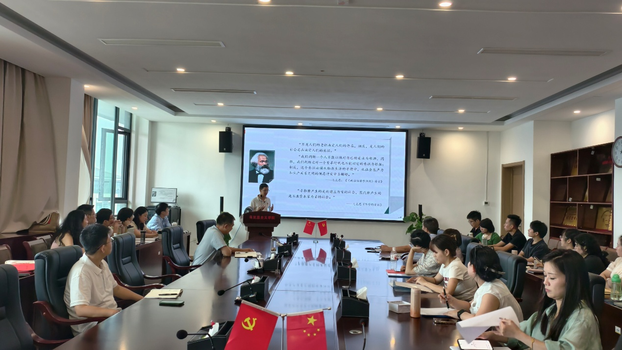 2025年9月23日下午,十大买球的正规网站思想政治教育公共课教研室开展了《马克思主义基本原理》课程的集体备课会,本次备课会由思想政治教育公共课教研室张遵攀老师进行了题为“马原课程中的哲学问题辨析”的备课思路分享,邀请了学院各系、教研室老师参与交流讨论,副院长刘德彰、院长助理杨志明应邀出席并进行指导。